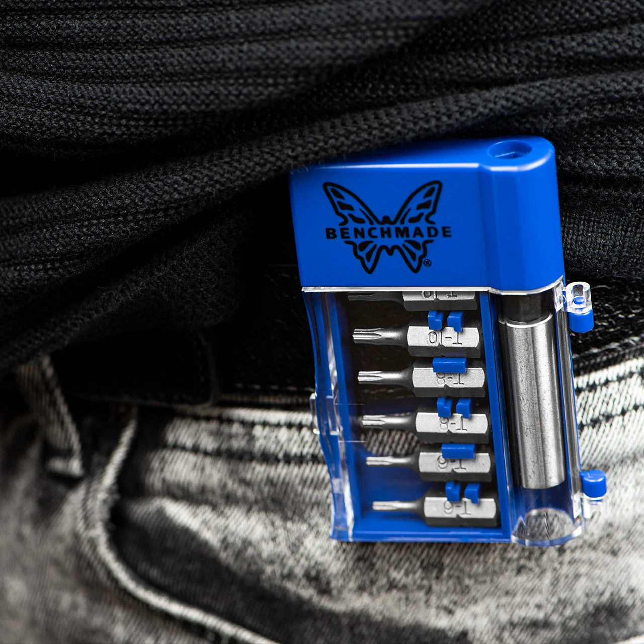 Maintenance on the go has never been easier. Benchmade’s Blue Box Tool Kit offers six convenient TORX bits; two each of T6, T8 and T10.