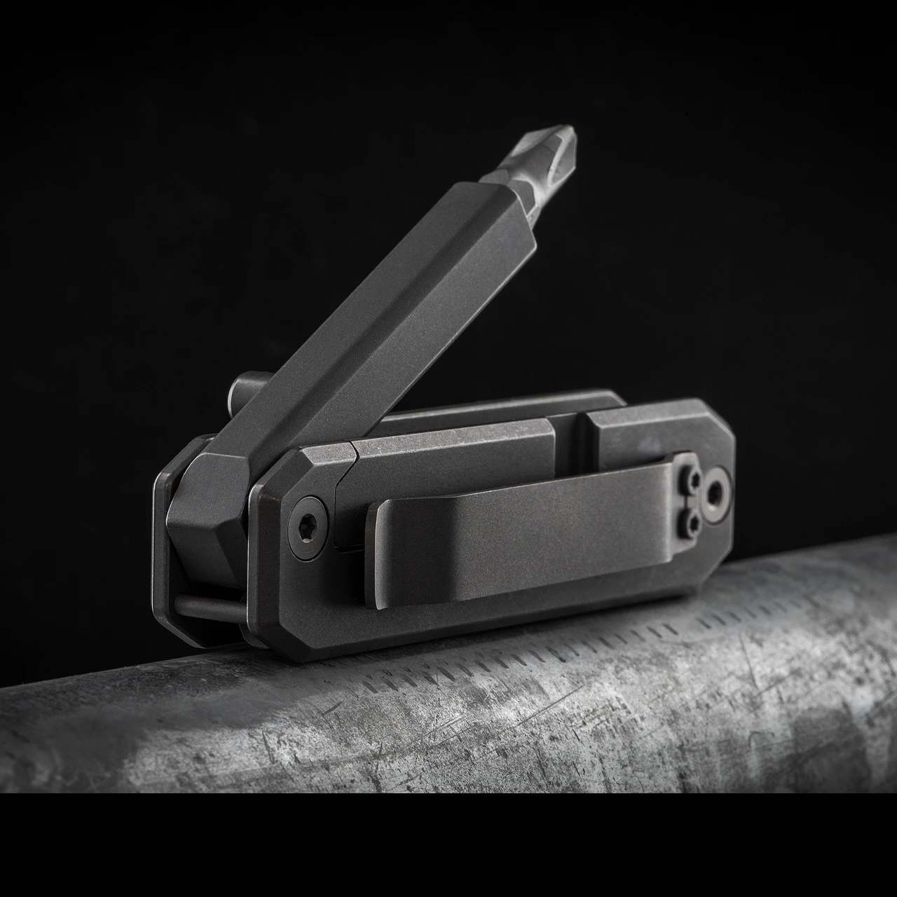 This is a fully custom, CNC-milled solid titanium screwdriver plus three hex bits and 40mm articulated extension arm that features a time tested frame-lock mechanism and lifetime manufacturer’s warranty. The tighter you grip it, the more secure the mechanism gets. It’s built from the ground up and is backed for life. If a high-end titanium knife and a compact screwdriver had a kid, this would be it!