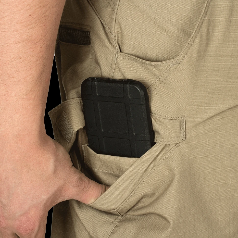The Claw Gear Defiant Flex Pant is a lightweight trouser which has been conceived and designed for a wide range of tactical applications as well as for the shooting range or everyday carry. Mechanical stretch fabric provides a superior range of motion when necessary. The knee area features an articulated design for improved comfort and mobility. A small integrated pocket on the rear is the perfect place to store a folder or a pistol magazine and features a reinforced edge for improved durability. Thigh-mounted cargo pockets feature a separated compartment to stow a smartphone or other gadgets.