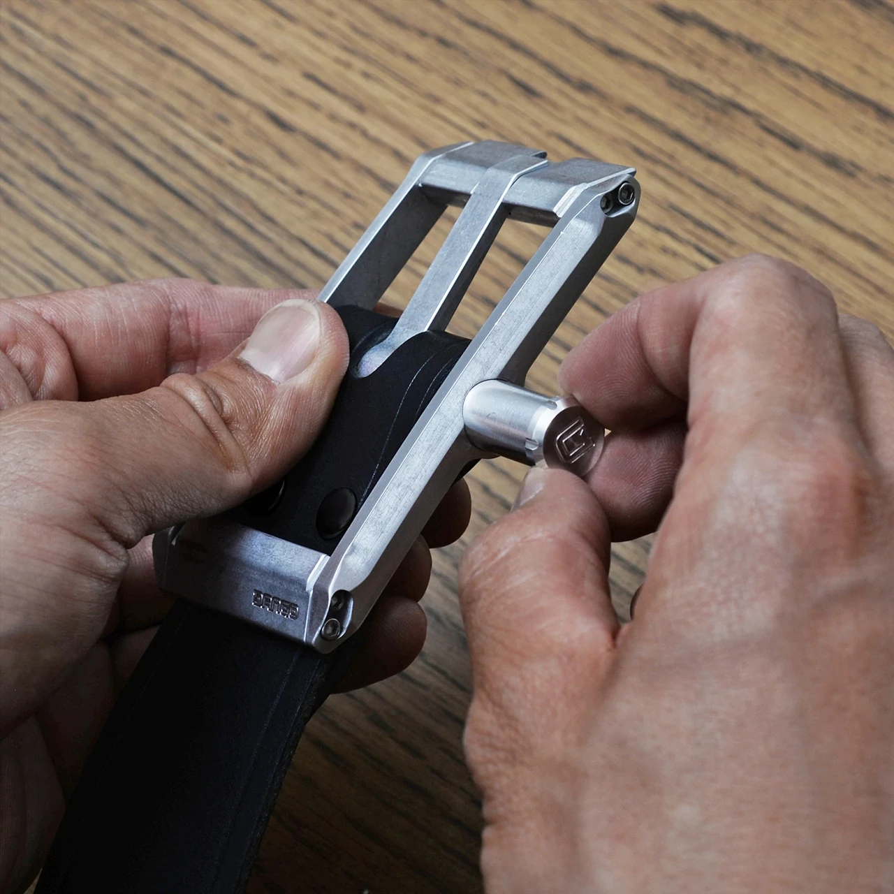 - The buckle is comprised of 7 individual machined parts – made and assembled in the USA.