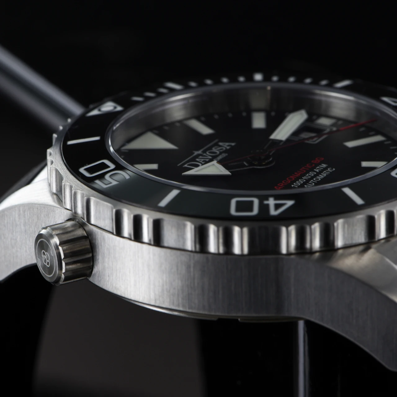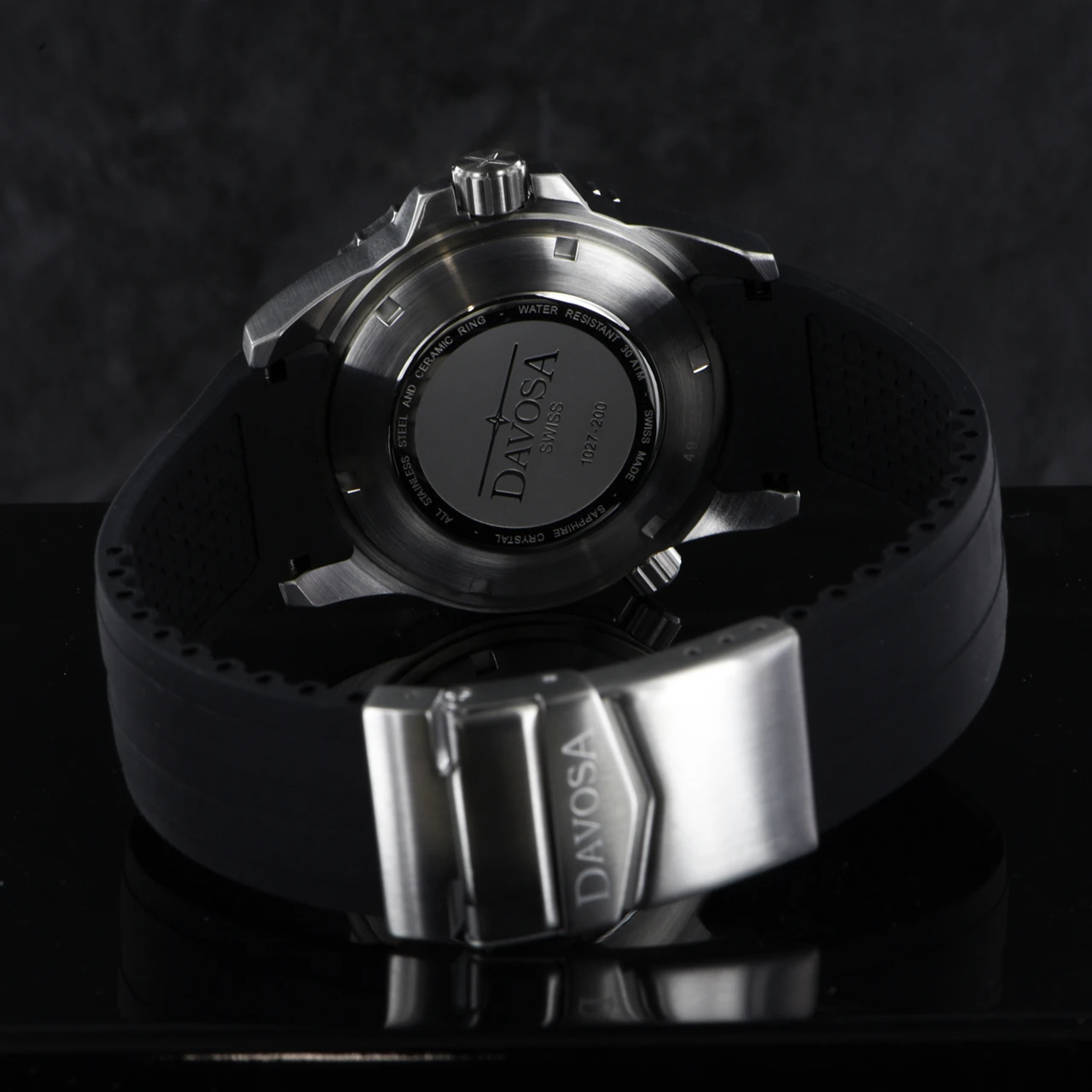 On the way down, the Swiss automatic movement Sellita SW 200-1 in the screwed stainless steel case keeps its pace undeterred. The scratch-resistant, anti-reflective sapphire crystal guarantees a clear view of the clearly designed dial with the 15-minute scale on the ceramic bezel insert as an orientation for emergency ascent. Thanks to the extension of the stainless steel strap with safety flap, the DAVOSA Argonautic BG Automatic can be worn over a wetsuit without hesitation.