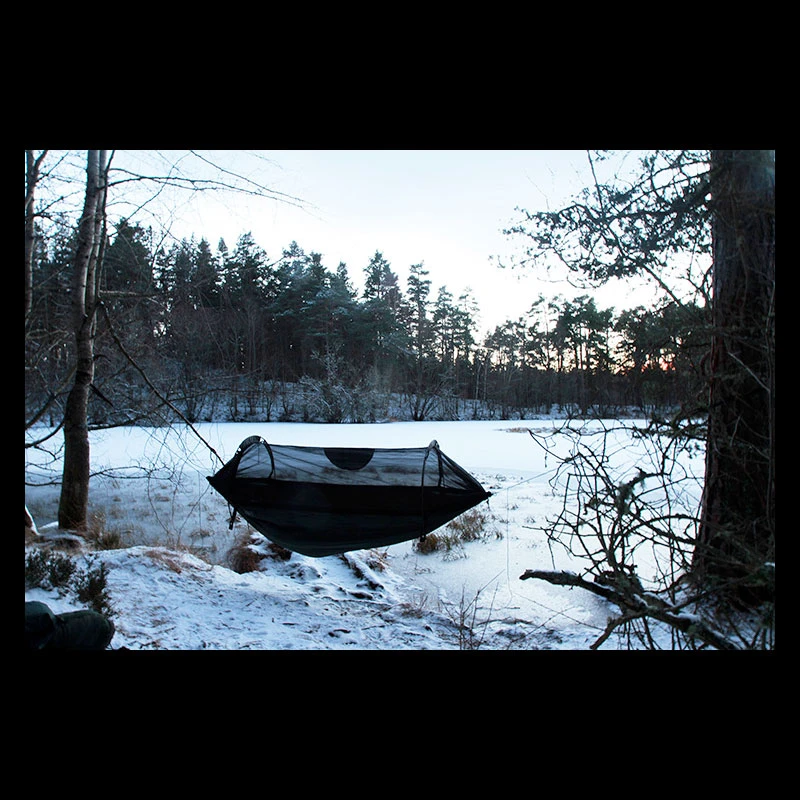 Includes SuperLight Jungle Hammock, Complete Whoopie Suspension System, 2 x full width poles, 3m guy line, 2 x 1m elastic cord, hanging pocket, extra waterproof layer