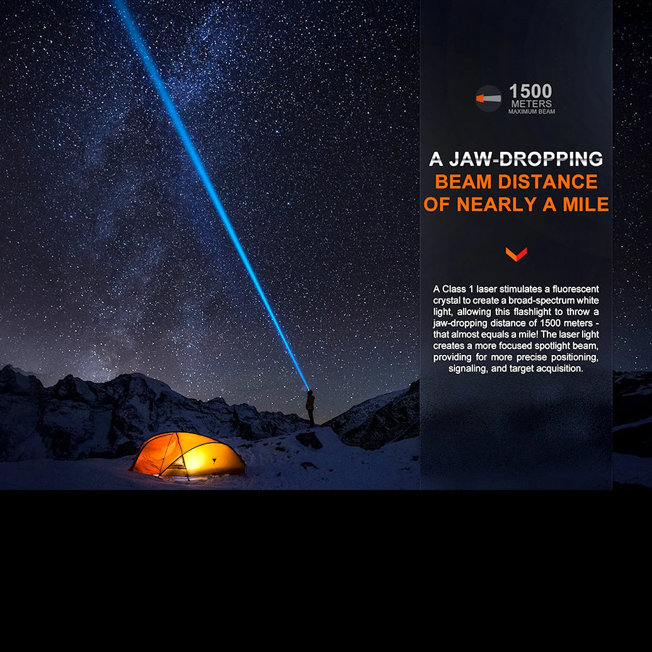 Fenix HT30R is a compact, premium quality professional hand held LEP (Laser Excited Phosphor) torch dedicated to extreme long range lighting. The light creates a white light beam similar to the LED spectrum by shining a 10w laser diode onto a phosphor crystal, then focusing the light generated into a tight, long range beam using integrated lenses.