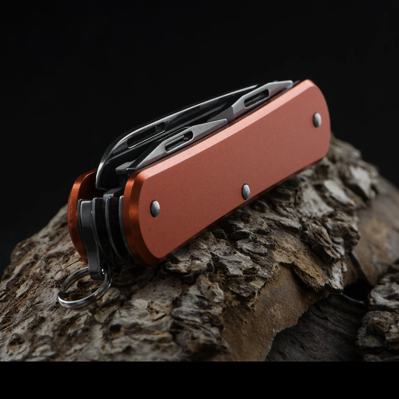 This version uses an aluminium handle in a choice of colours and has three tools in addition to the stout little sheepsfoot blade. There’s a saw, a can opener with screwdriver and a bottle opener with screwdriver. Pop one on your keys with the keyring attached and go about your day!