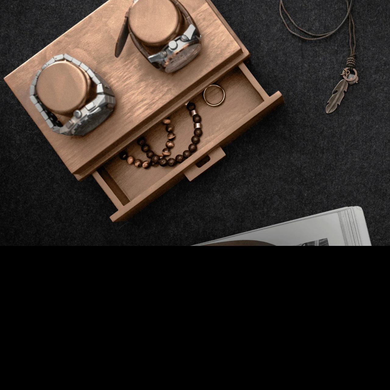 Many people are working from home these days so it is super important to create the right working environment, and this sleek watch box will enhance any desk setup! Many people take their watch off to work at their desk, and now they have the perfect place to display and protect their watches while they work!
