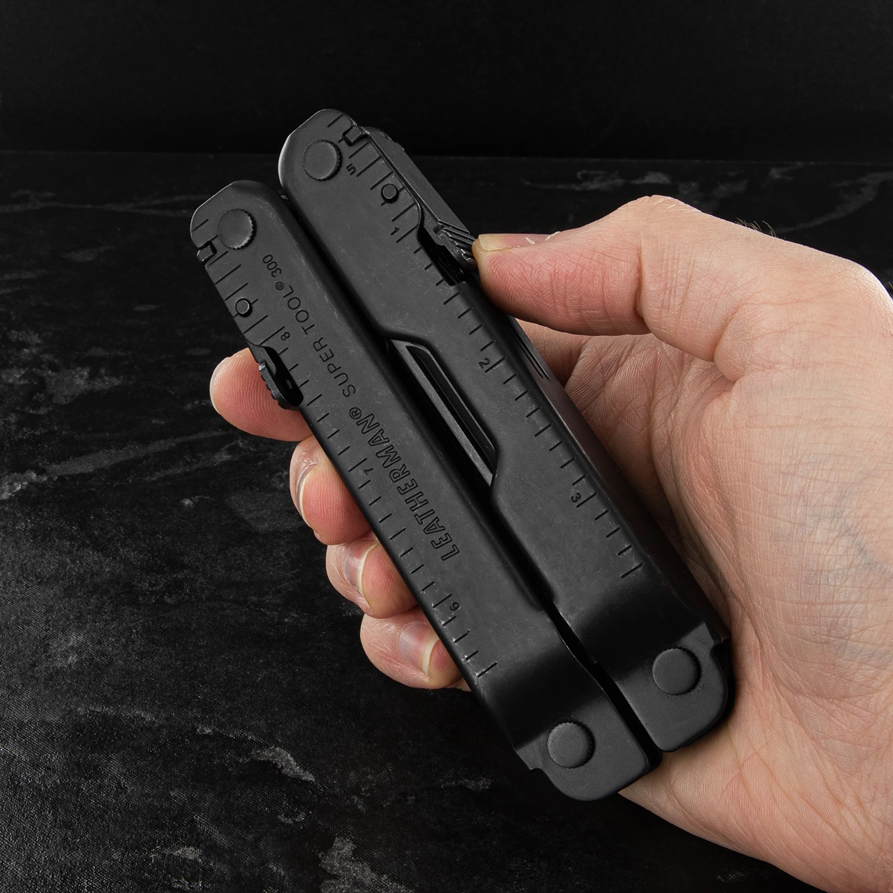 Leatherman Supertool 300 Black: Black sheath with grey logo.