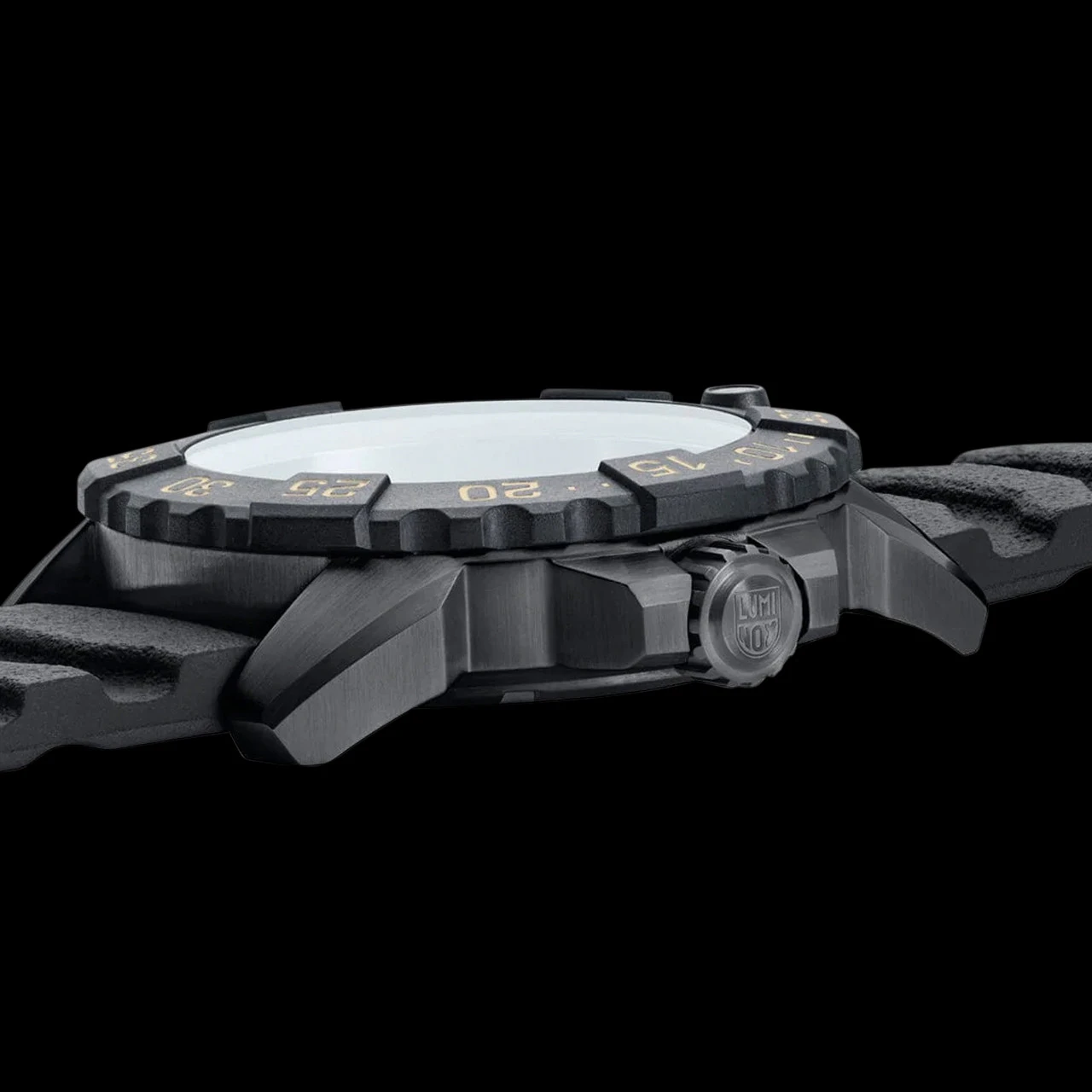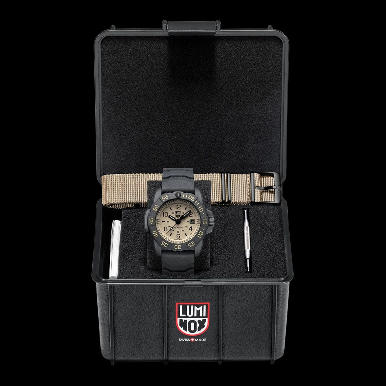 The Luminox Navy SEAL Foundation watch combines durability with purpose. With the strap set, the watch provides versatility and functionality with two options rubber or nylon. The 45mm case in steel with its sand-colored dial and CARBONOX bezel makes for a handsome timepiece that reminds us of the call to duty every Navy SEAL answers.