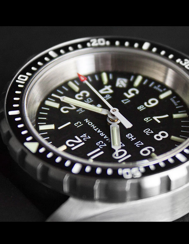 The Marathon Diver’s Quartz Medium is a dive watch certified for water resistance down to 30 ATM – 300 meters (1000 feet) underwater. The Diver’s Quartz Medium uses a scratch resistant sapphire glass crystal to maintain maximum legibility. Built from 316L surgical grade stainless steel, the Diver’s Quartz Medium is a tough watch that is comfortable for people with smaller wrists.
