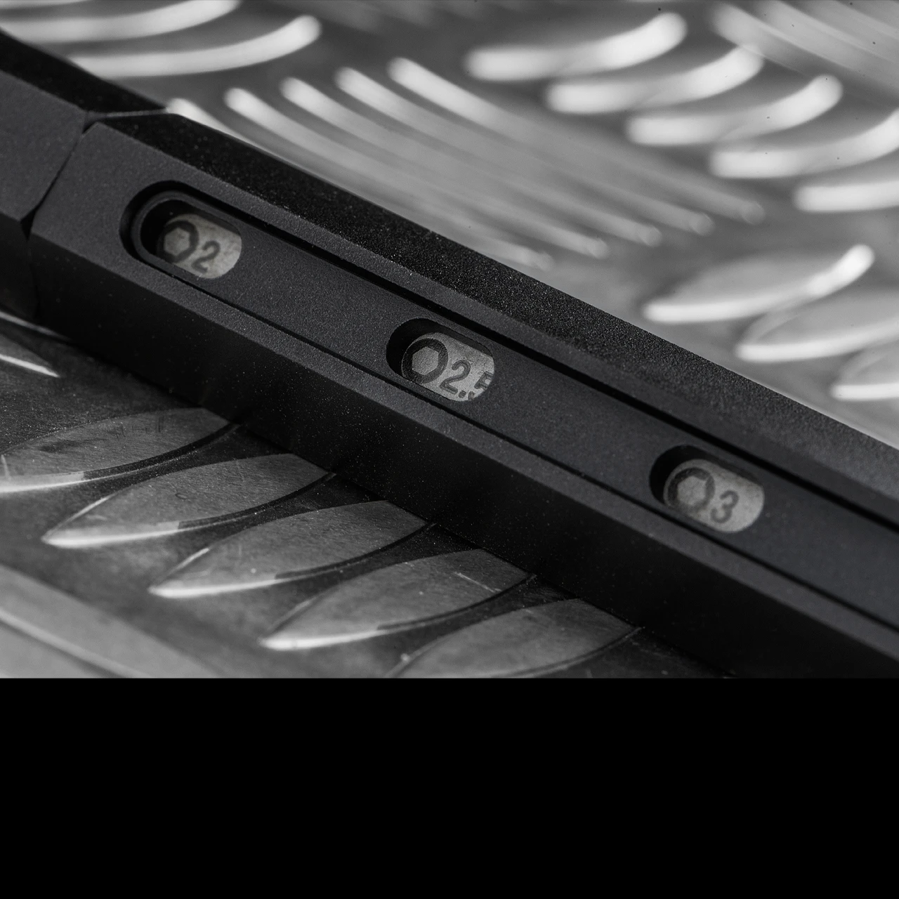 The cap is fastened with a strong magnet and features a pocket clip for easy attachment. The pen body is machined by aluminum, and the material of precision bits is upgraded to high-quality S2 Tool Steel.Â