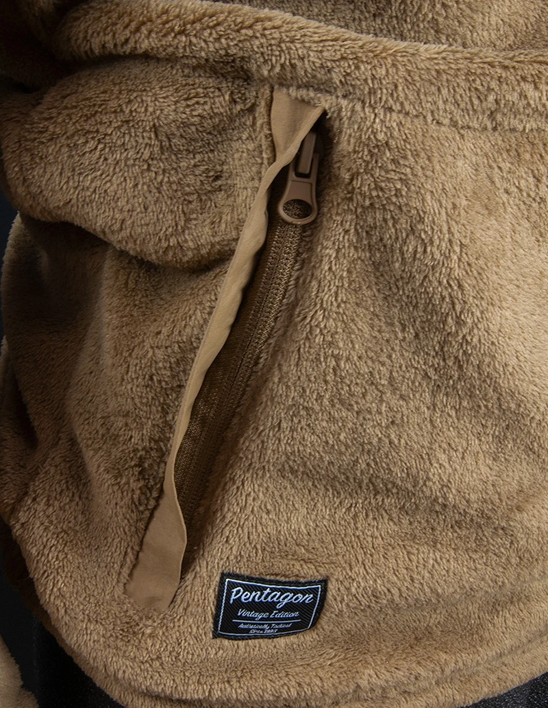 Perfect for a cold snap or at the end of a summers day round the campfire, the Pentagon Grizzly Half Zip is made from 100% Polyester fur thus trapping the warm air and keeping you warm outdoors or in.
