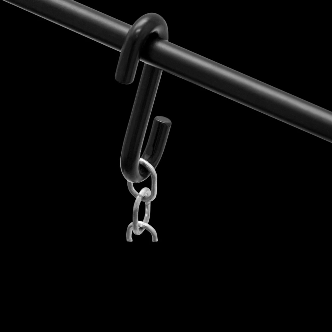 With its eyelet construction, the Petromax Fire Bridge is stable on four feet and can be set up in no time. The Fire Bridge has a 115cm crossbar, a grilling grate with height-adjustable chain suspension as well as three hooks of different length to suspend cookware. The long crossbar enables you to cook over one or more fires.