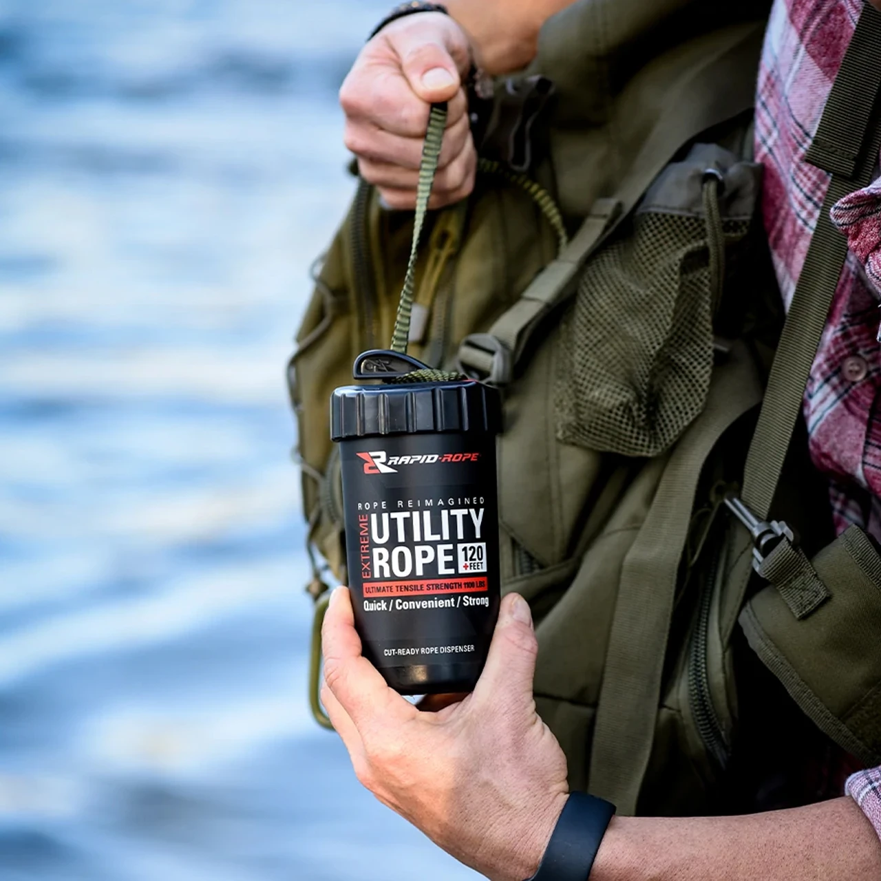 If you’re sick and tired of needing some cord at home or on an adventure only to find it all tangled up, you’re going to love Rapid Rope in a can! Rapid Rope gives you 36 metres (120 feet) of 500kg (1,100 lb) test cord in an easy to deploy canister at your fingertips.