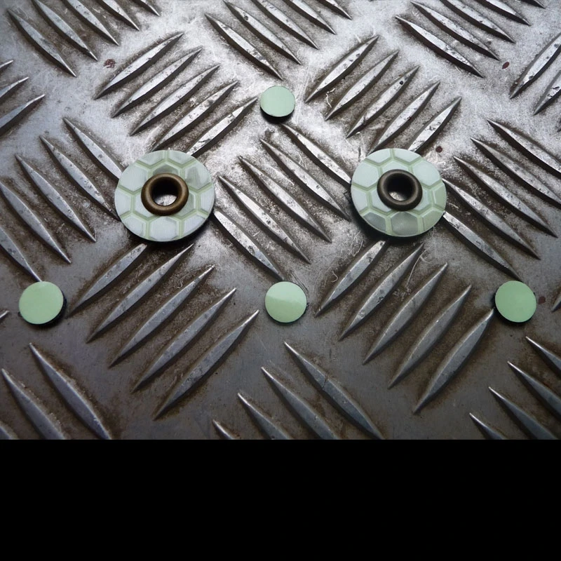 They are sold in pairs and available in two sizes; small, 2.5cm diameter or X large, 3.2cm. Each pair comes with 4 removable ‘Moonglow ‘ micro dots which can be placed underneath the main marker to shine out from the eyelet hole .