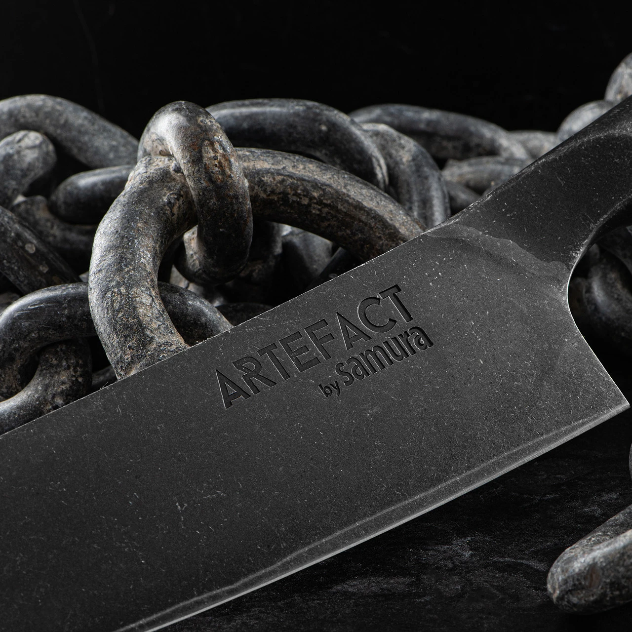 The Samura Artefact Series is an excellent choice for lovers of bold design and cooking enthusiasts who value style and performance in one package. The Santoku knife features an all metal construction with a distinctive stonewash finish. The blade is AUS-10 Damascus steel whilst the hollow handle is stainless steel providing excellent balance and lightness of touch in use.
