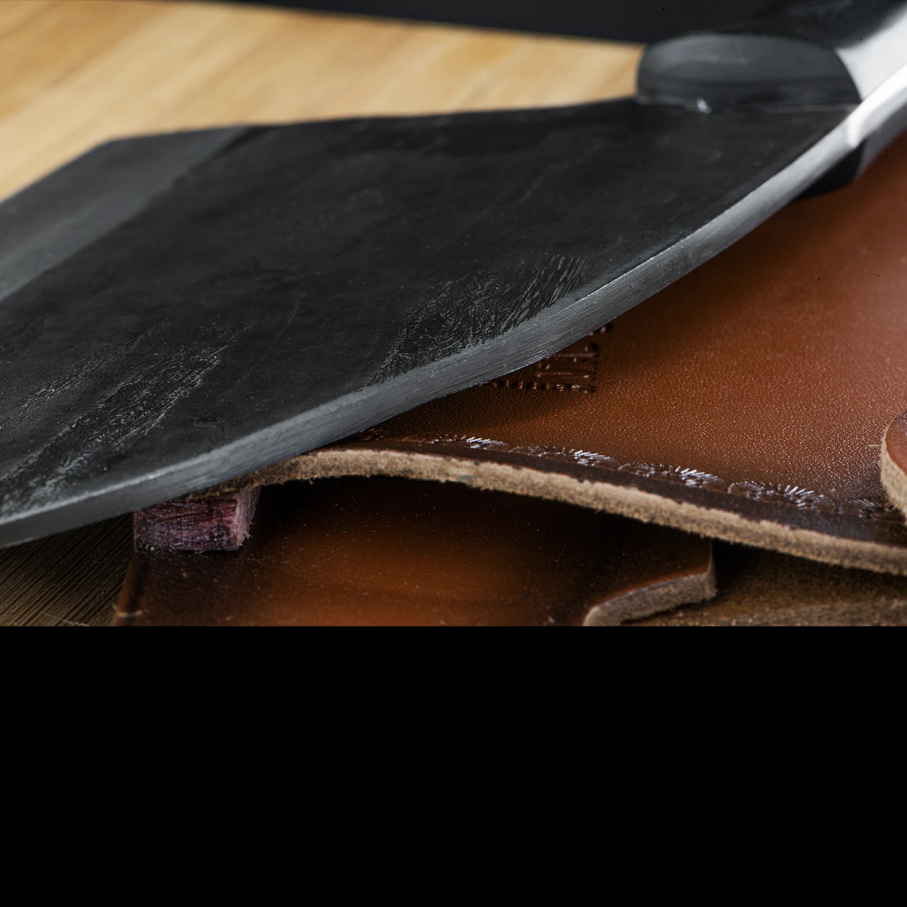 Hand forging provides a unique look for each chopper. It is supplied with a leather sheath.