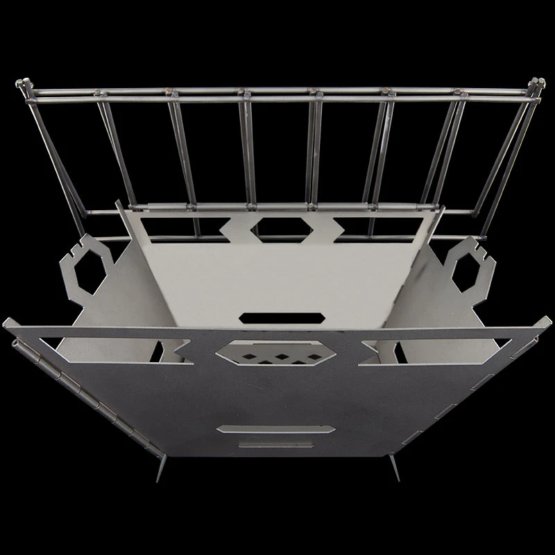 Get grillin’ in the backcountry without charring the Earth or weighing down your pack! The Fire Box Grill features a hinged grate and panel system for easy setup, fold-flat packing, and fire preparation. Just lift the grate and add your fuel. Titanium tent stake skewered kebabs, anyone?