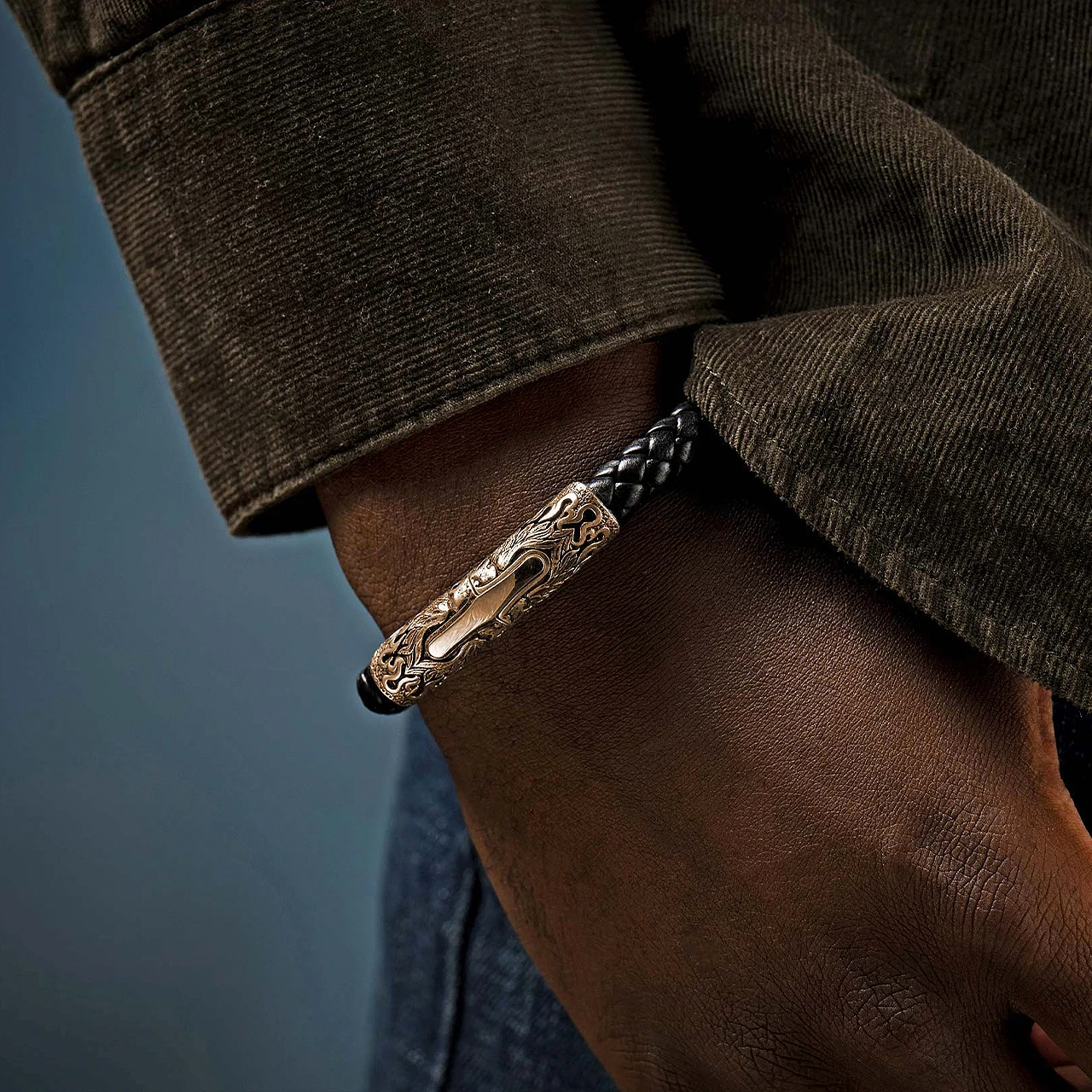 Straight up, we love this piece. The William Henry Ramble On is a gorgeous bracelet that features a fully sculpted bronze magnetic clasp with a secure closure on custom braided leather. Rendered with the heart of rock and roll, the ornate metal work is remarkable from every angle. Wear it solo, wear it stacked, put it on your mantle and admire it from a distance, whatever works for you. Because this piece works.Â