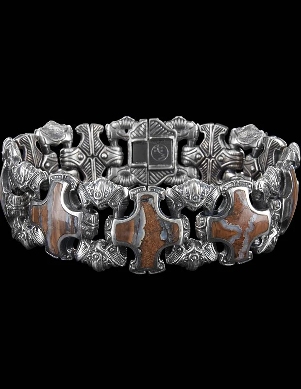 William Henry’s jewellery collection showcases their work with rare and storied materials, and exceptional craftsmanship, blended with intricate and symbolic stylings in sterling silver, interwoven with exotic and unique forged metals derived from the ancient arts of sword-making.